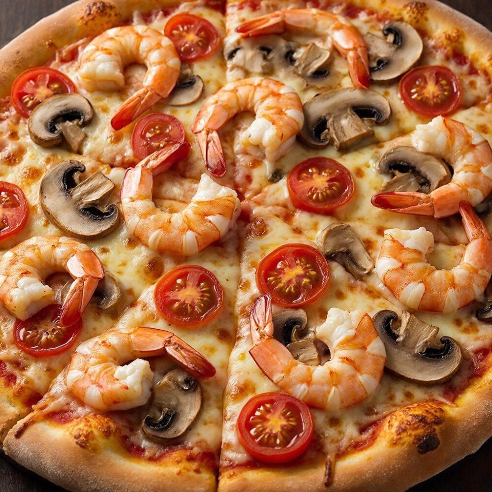 Пицца"С креветками и ананасами"